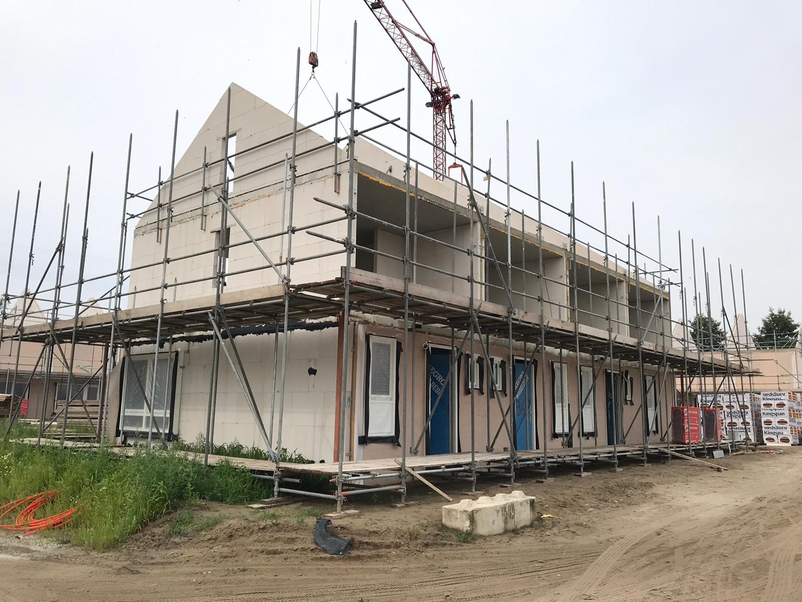 De wonignen krijgen steeds meer vorm en het beeld van de wijk wordt duidelijk. Vrij snel na de bouwvak worden de eerste dakkappen gelegd.
