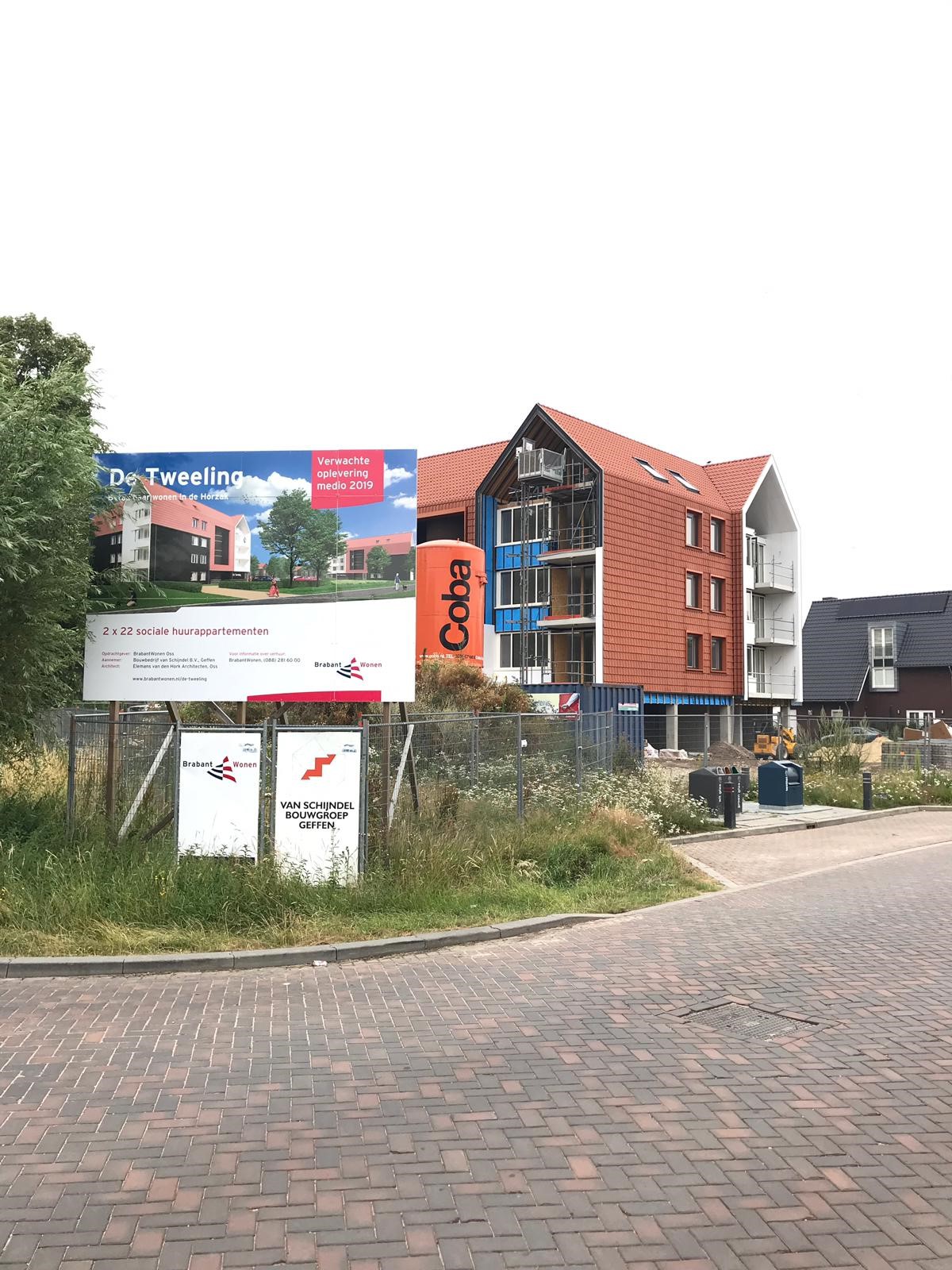 Nu de gevelsteigers nagenoeg zijn weggehaald, komen er twee unieke torens in beeld aan de rand van de woonwijk Horzak te Oss. Deze twee identieke gebouwen, ook wel de “Tweeling” genoemd, bestaan ieder uit 22 sociale huurappartementen en bouwt Bouwbedrijf van Schijndel in opdracht van Woningcorporatie BrabantWonen.
