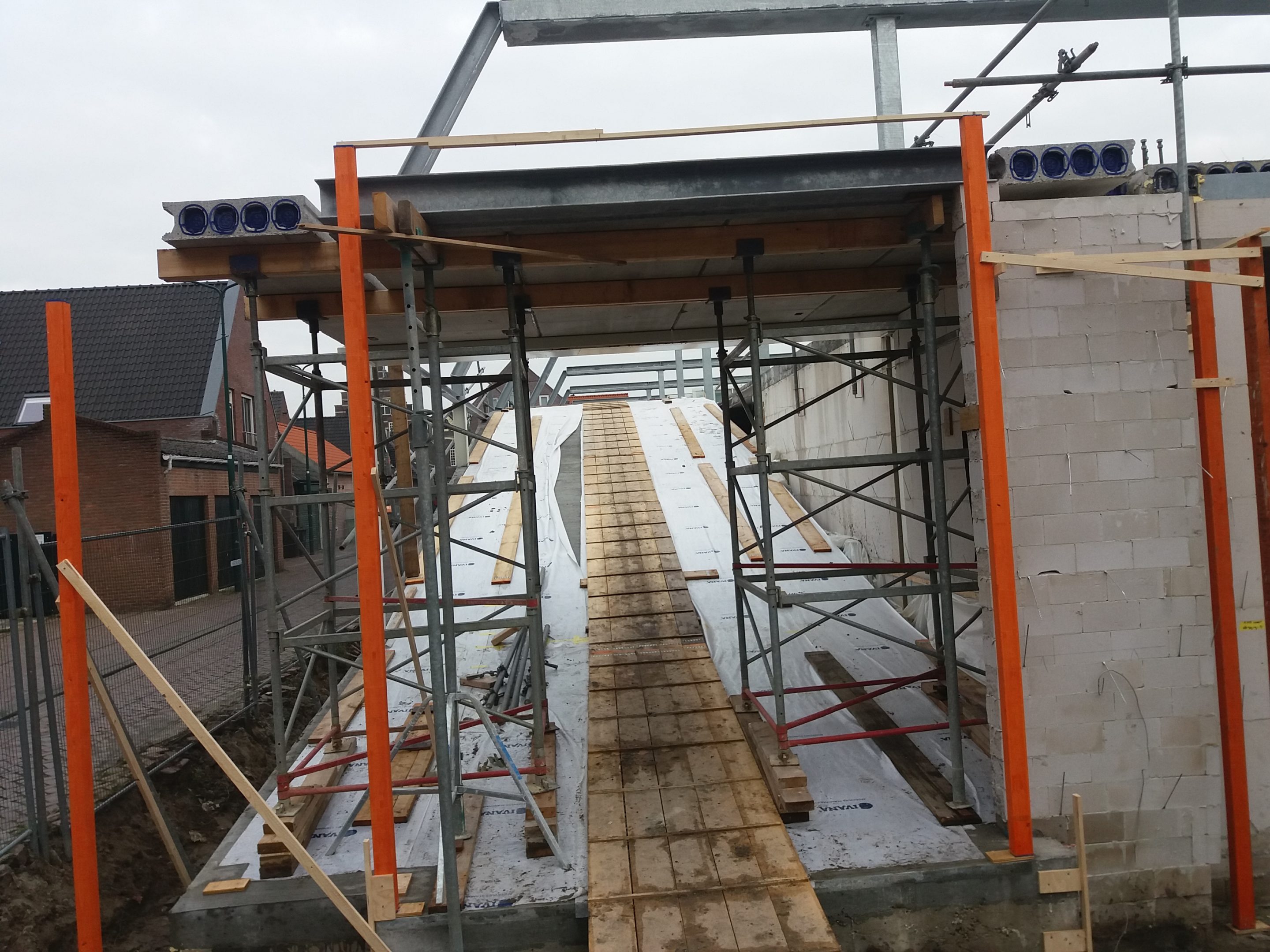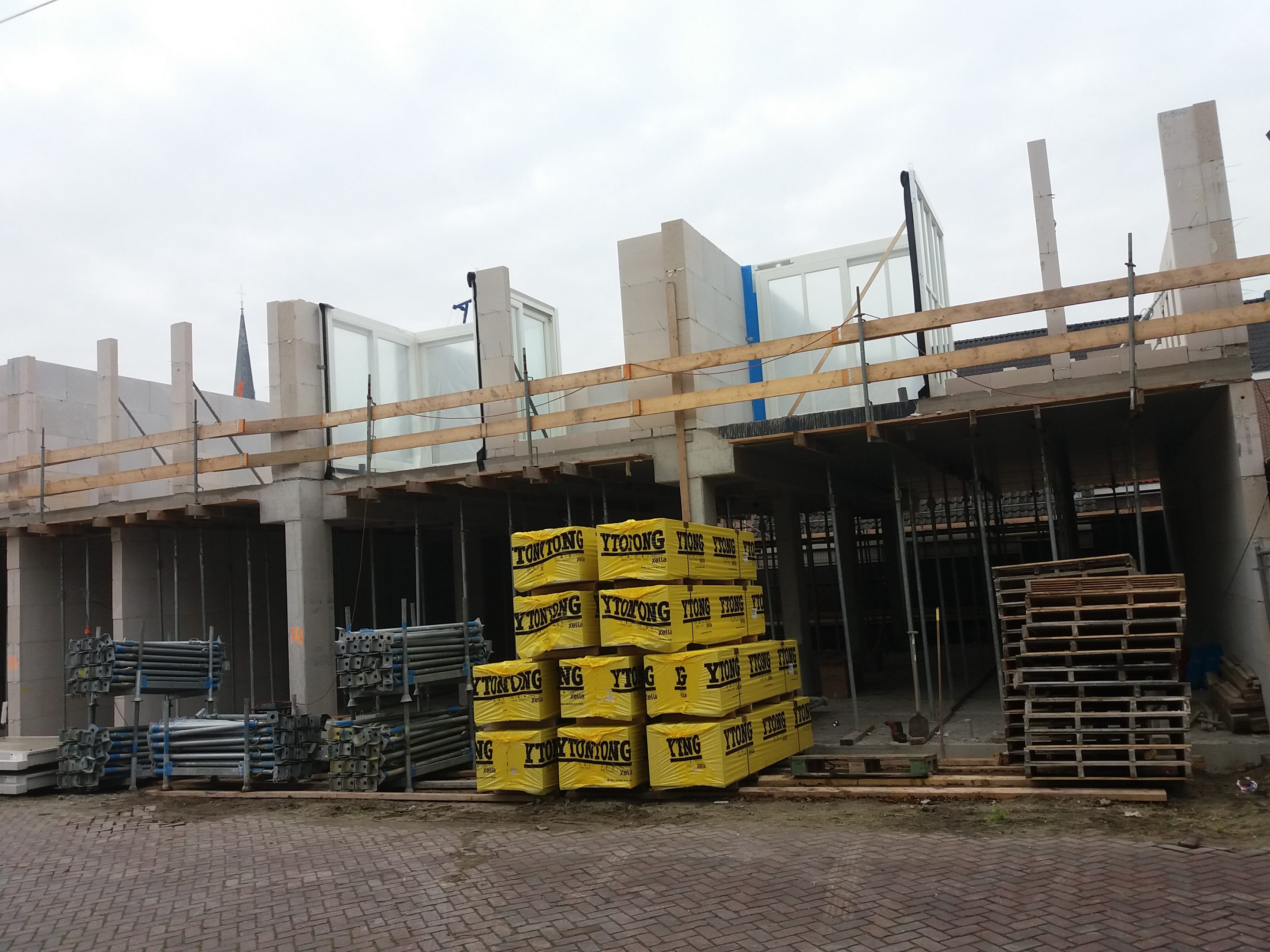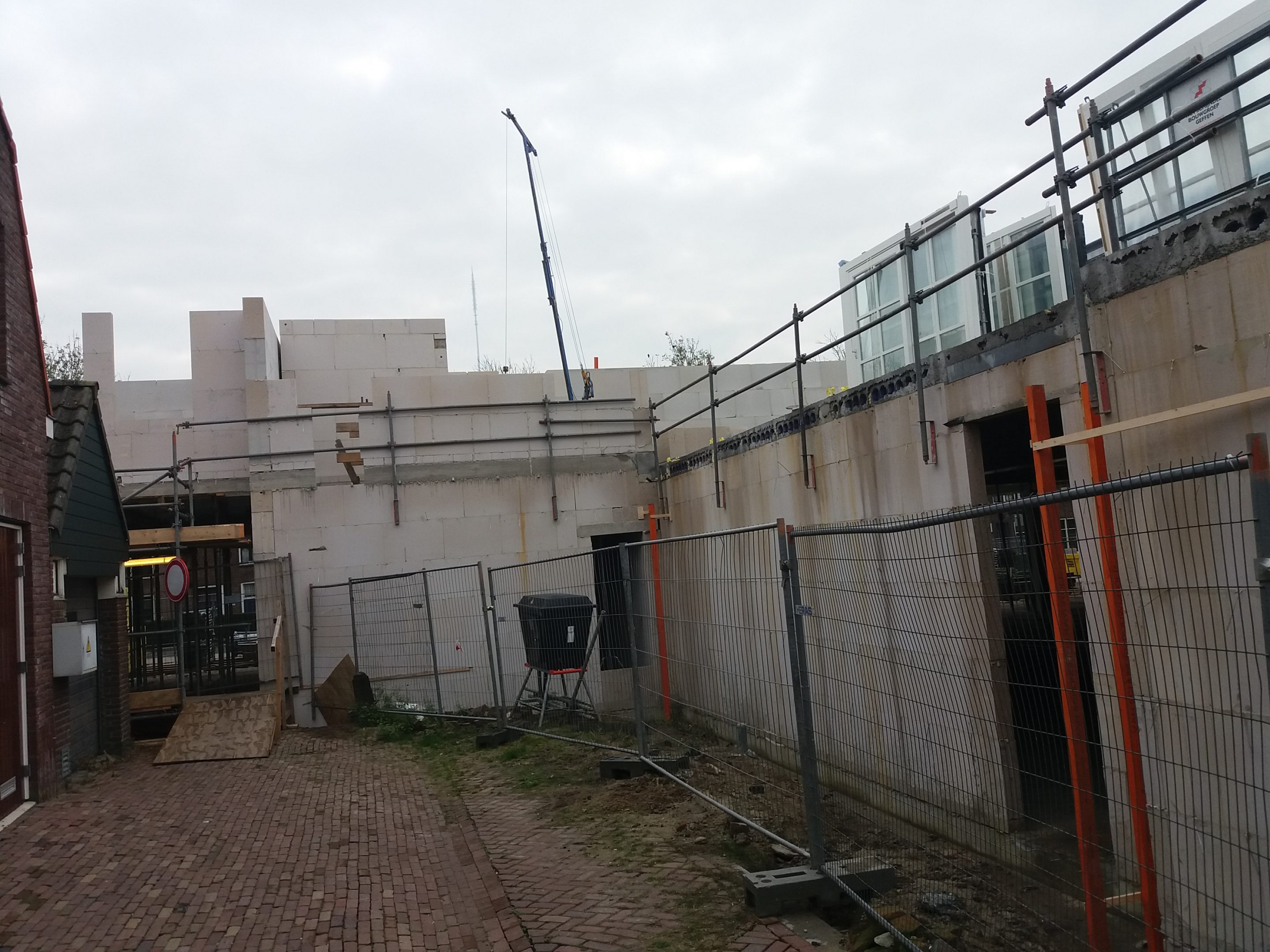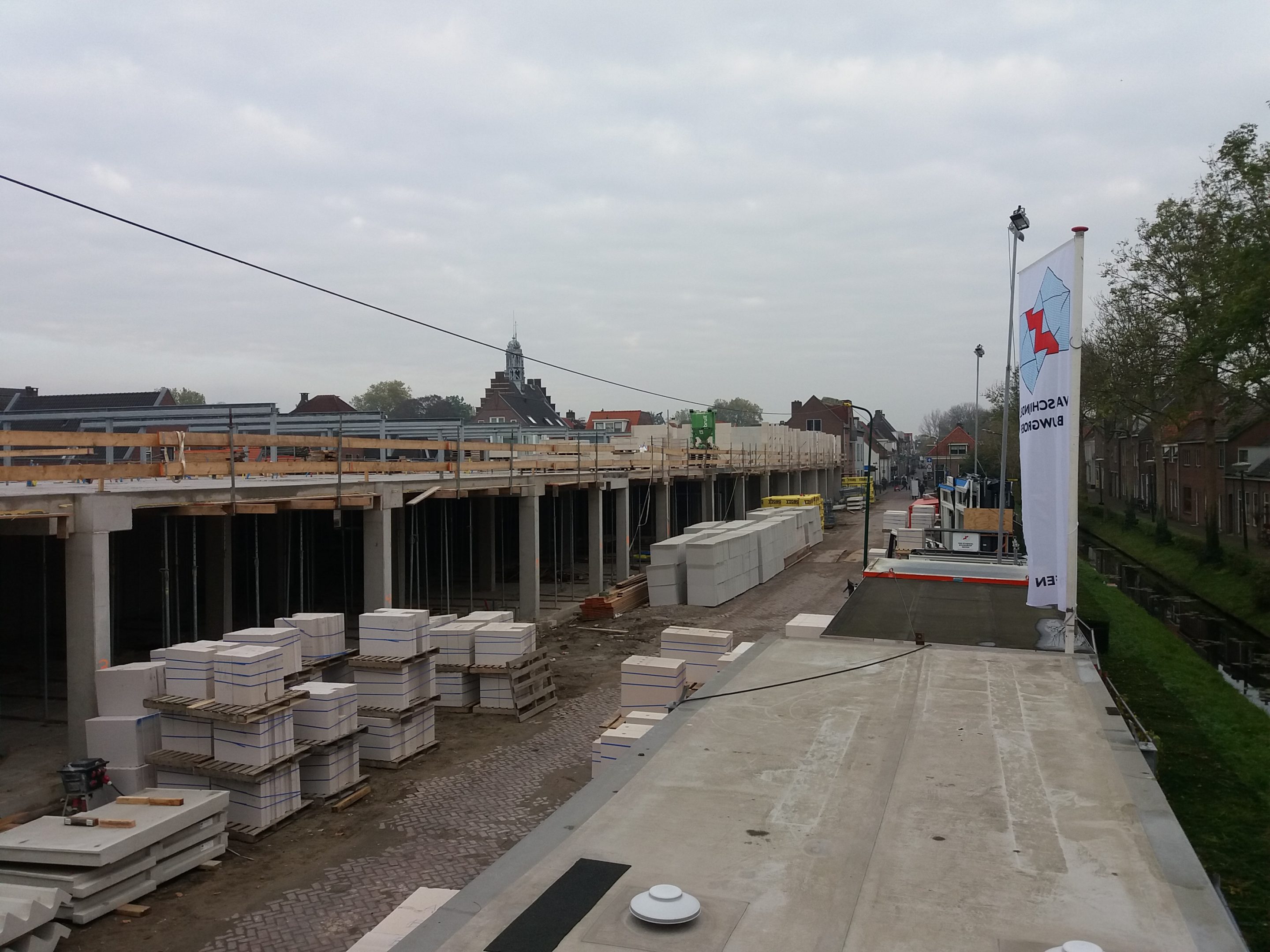 Op dit moment is de eerste verdiepingsvloer gelegd en de toegang naar de parkeergarage met 28 parkeerplaatsen gereed. 14 appartementen hebben vanuit de parkeergarage toegang tot hun woning. De overige 2 appartementen hebben toegang op de begane grond. Onder de 14 appartementen worden de commerciële ruimtes gerealiseerd.