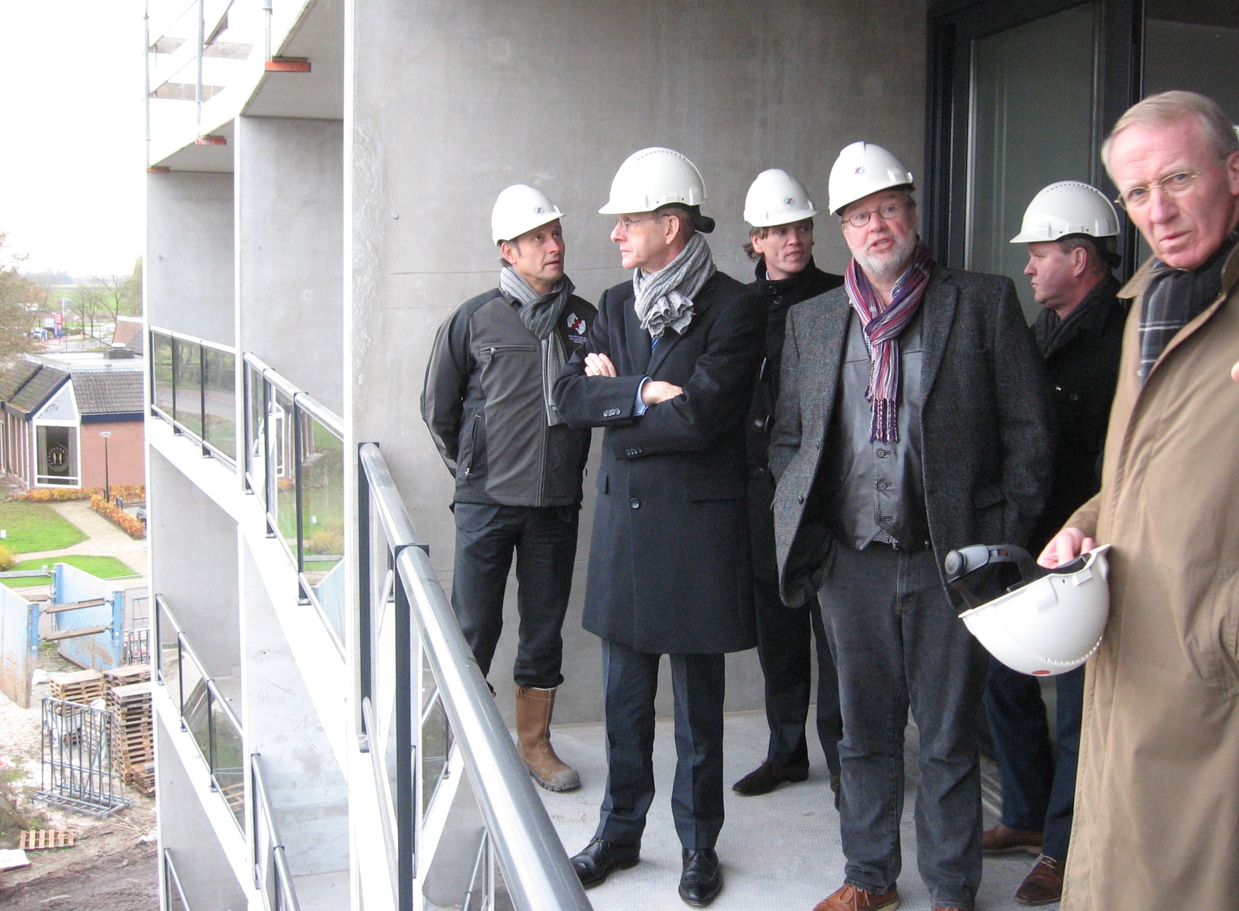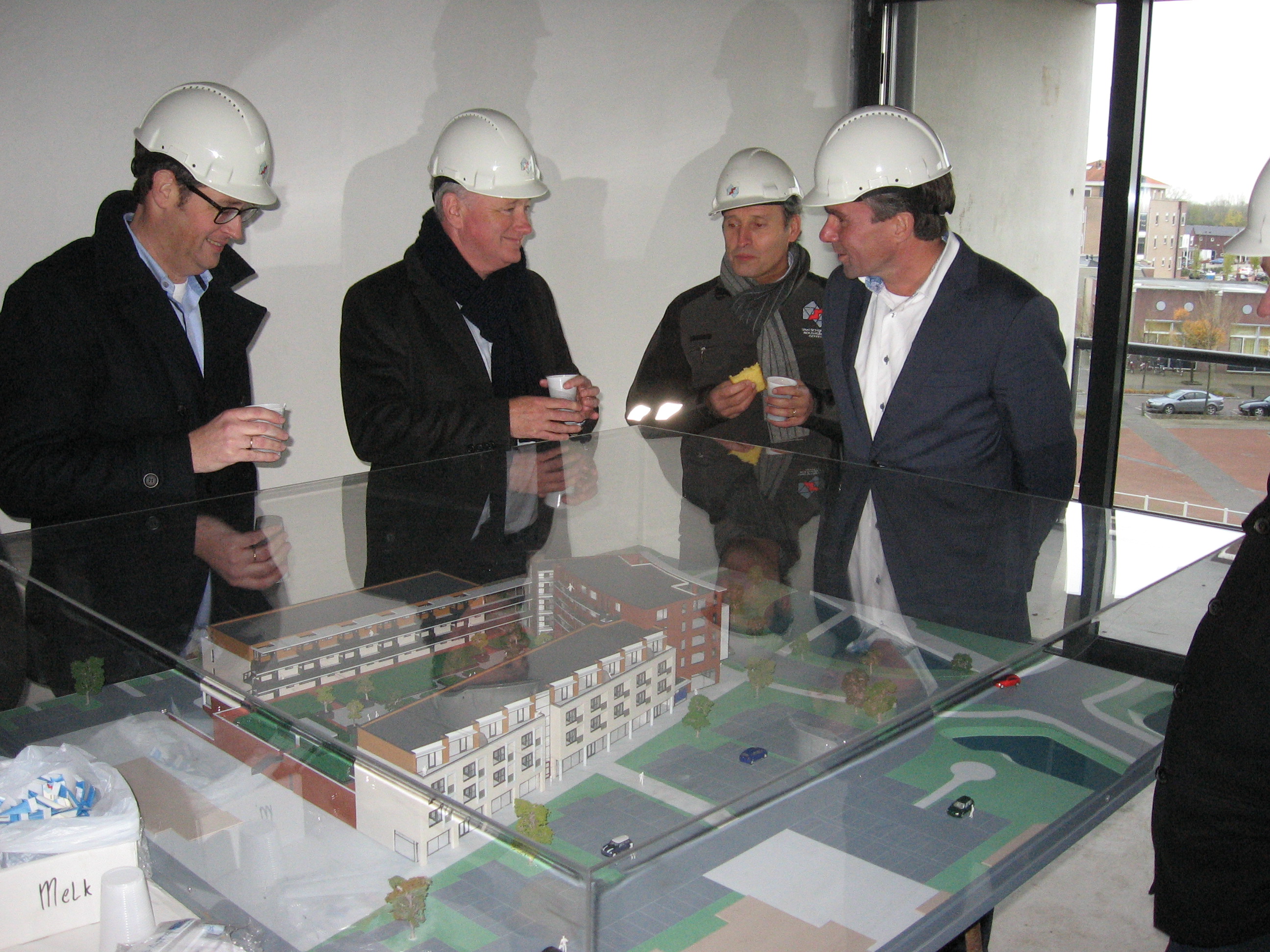 Op dinsdag 26 nov .j.l. bracht het College van B&W van Woudrichem een bezoek aan de bouwplaats van nieuwbouwproject ‘t Rond. Ze waren zeer onder de indruk van het bouwtempo waarin het project wordt gerealiseerd en stonden versteld hoe secuur het straatwerk momenteel wordt gelegd. Hierdoor kwam het gebouw des te meer tot zijn recht en door de ondertussen gezakte steigers werd de bouwstijl nog duidelijker zichtbaar.