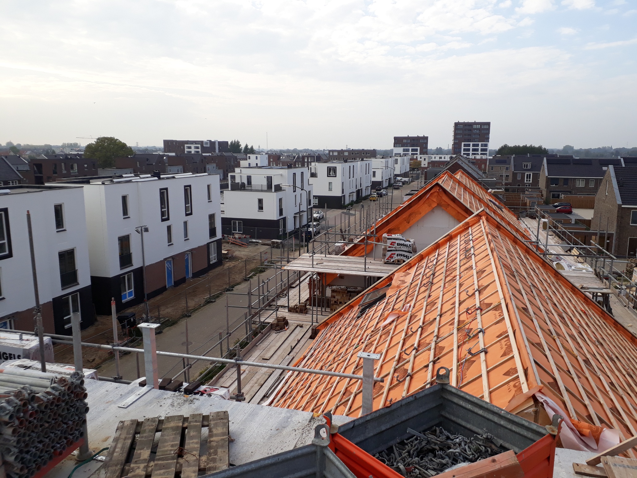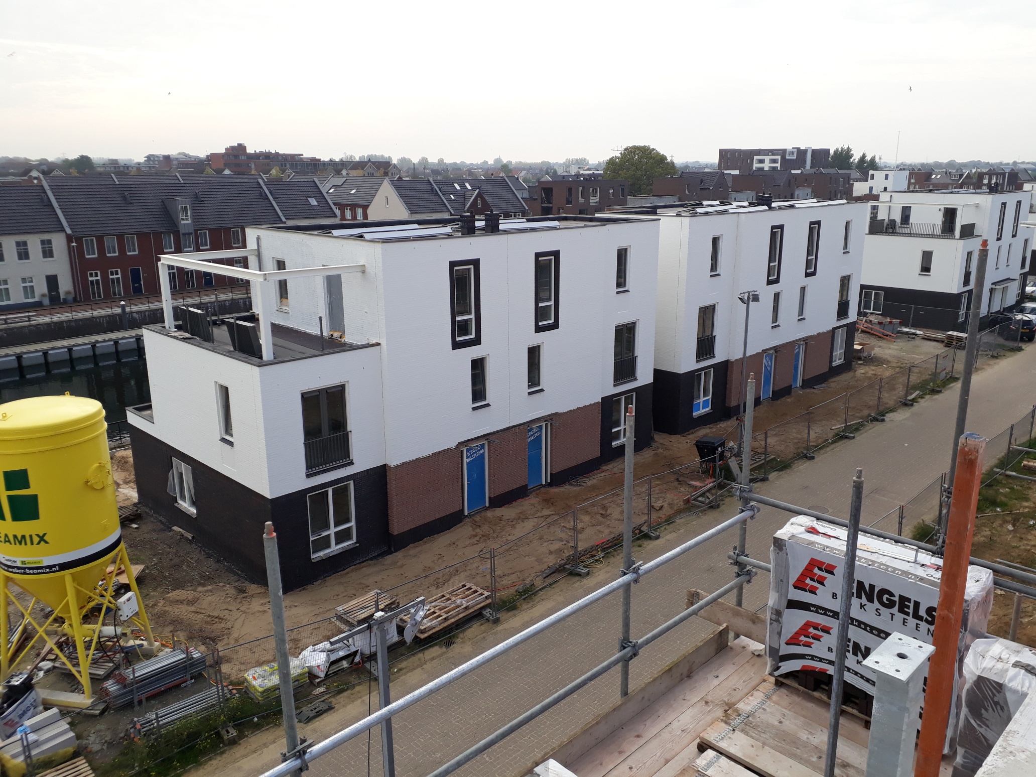 Bij de eerste vier blokken zijn we gestart met de afbouw. Bij de overige blokken zijn we nog druk bezig met de ruwbouw. Ook wordt het binnenterrein aangepakt zodat de bewoners straks hun auto op het binnenterrein kunnen parkeren. De verwachting is dat de eerste woningen nog dit jaar worden opgeleverd. De overige woningen zullen we in het eerste kwartaal van 2020 opleveren.
