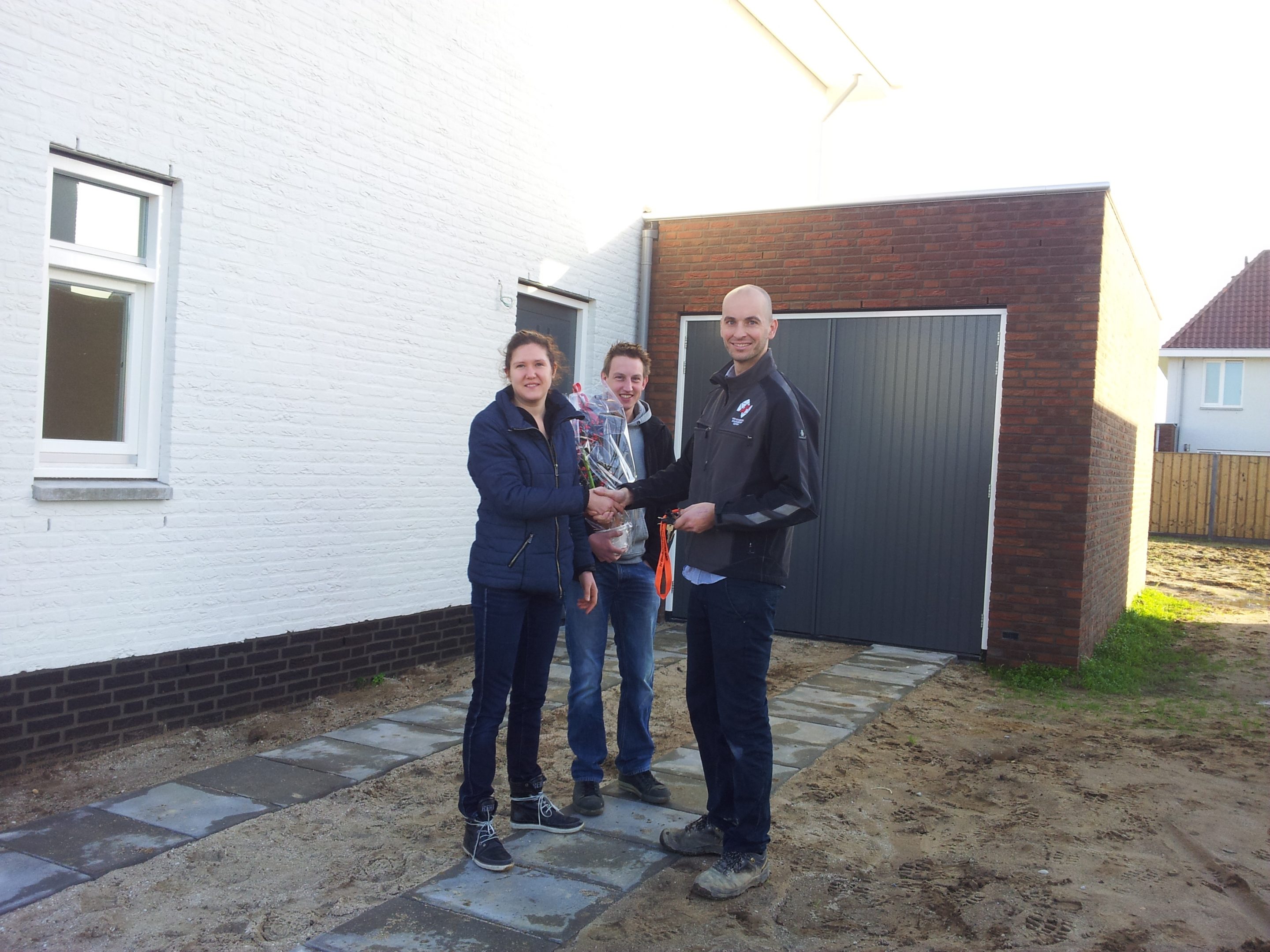 De kopers van bnr. 22 ontvangen de sleutel van de uitvoerder.
