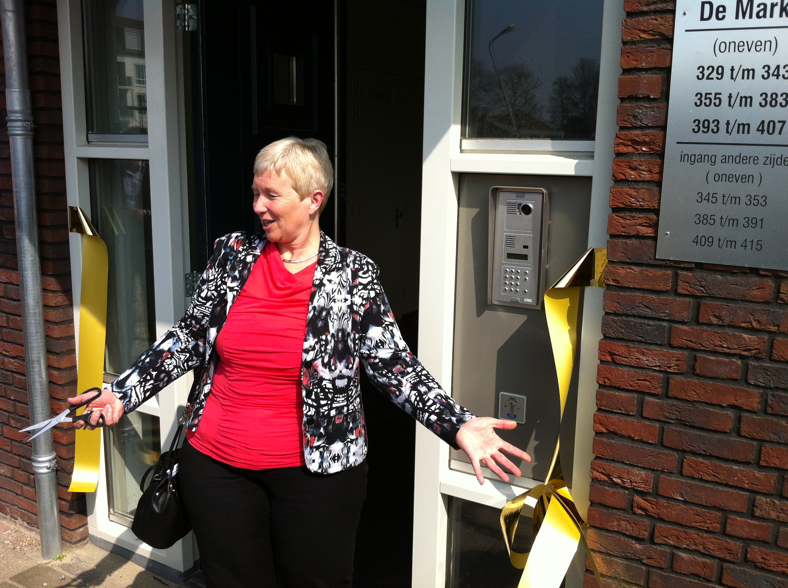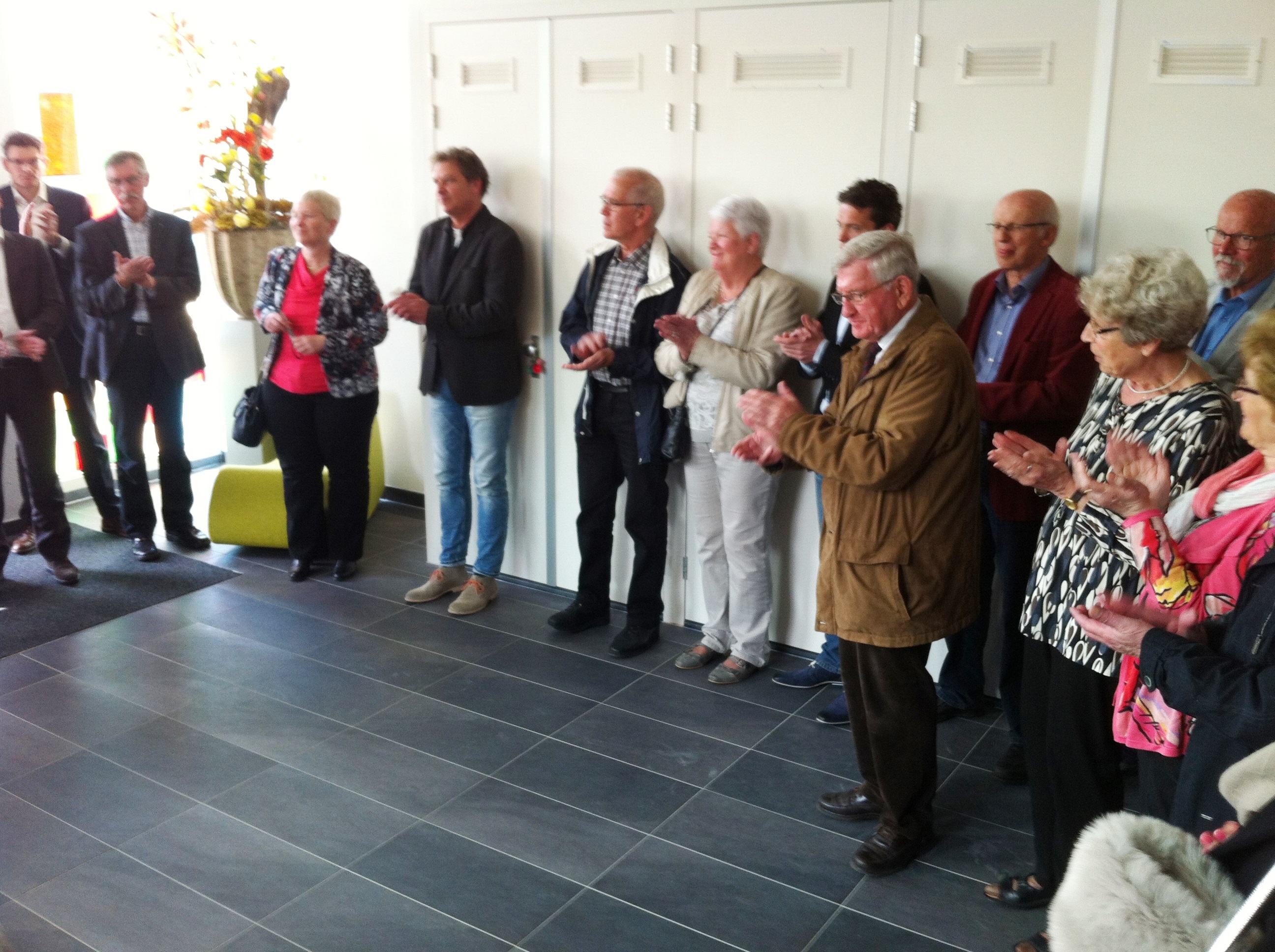 Donderdagmiddag 9 april was het zover : de feestelijke opening van De Primeur door wethouder Dilia Blok. Onder een stralende lentezon en in het bijzijn van alle bewoners opende mevrouw Blok allereerst een feestelijk lint voor de voordeur, waarna iedereen kennis kon nemen van de ingerichte entreehal. Deze entreehal kenmerkt zich door mooi invallend licht door de gekleurde ramen. De sfeer in de hal wordt verhoogd door mooie meubels en planten waardoor er meteen een gevoel van thuiskomen is.