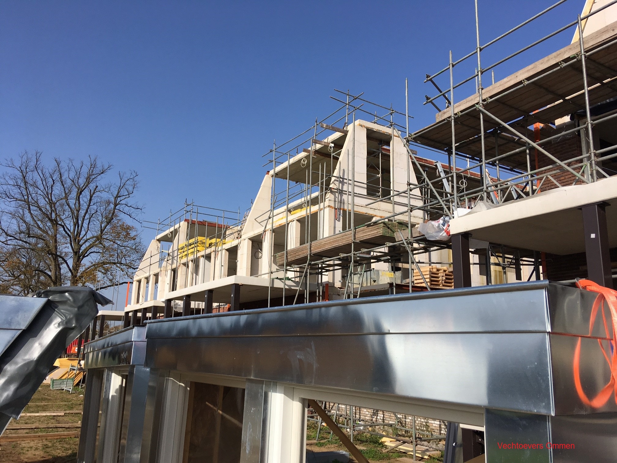 - Aan de Vechtoevers begint het project “Vechtkade 1e fase”, bestaande uit 25 koopappartementen steeds meer vorm te krijgen. De eerste dakplaten zijn gelegd en er is gestart met het buitenmetselwerk en de kozijnen, waardoor de contouren van dit prachtige gebouw steeds meer zichtbaar worden. De voorbereiding van de 2e fase, bestaande uit 17 koopappartementen, is in volle gang.