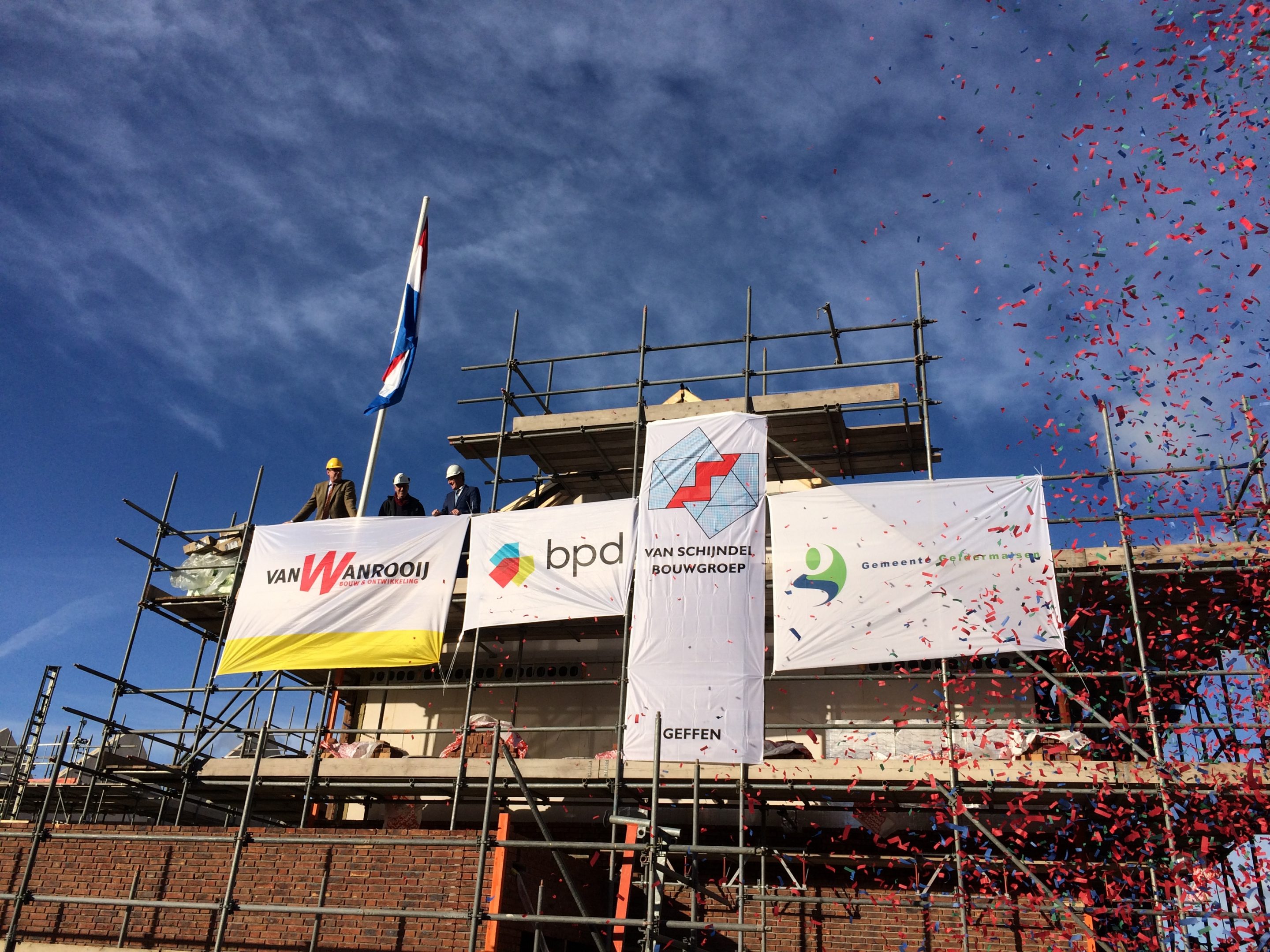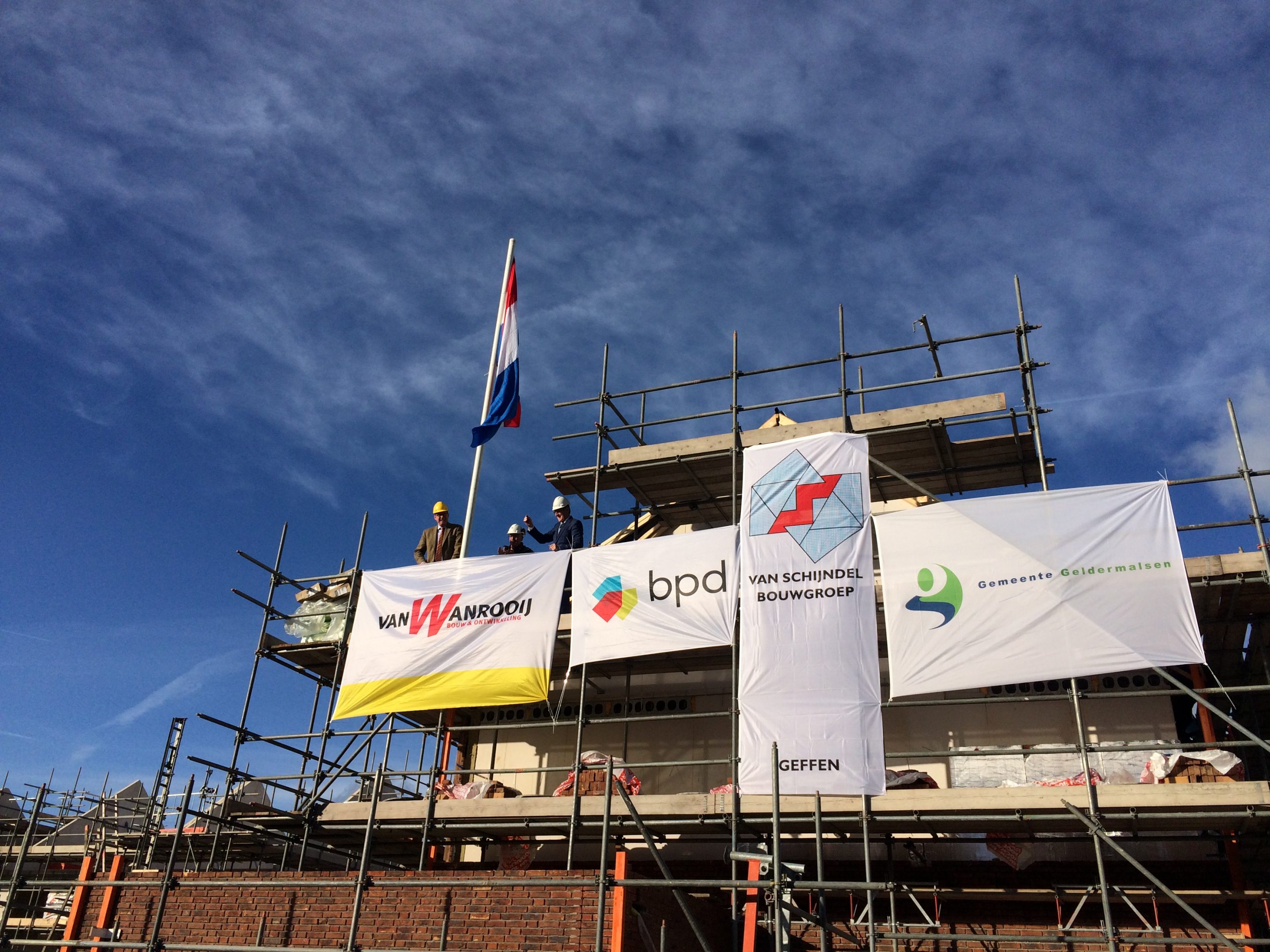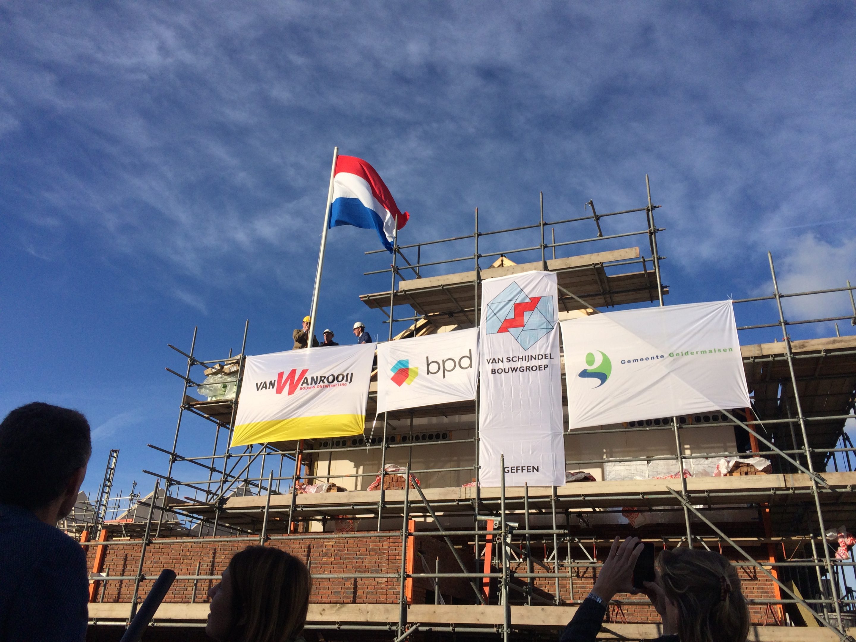 Op vrijdag 27 oktober j.l. is het hoogste punt van de bouw van de 23 woningen De Bastide in Meteren, gemeente Geldermalsen gevierd. De Bastide maakt deel uit het project De Plantage. Onder toeziend oog van de toekomstige bewoners werd de vlag gehesen door wethouder Ronald van Meygaarden en Rob Arends van BPD.