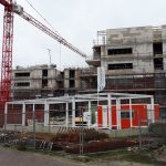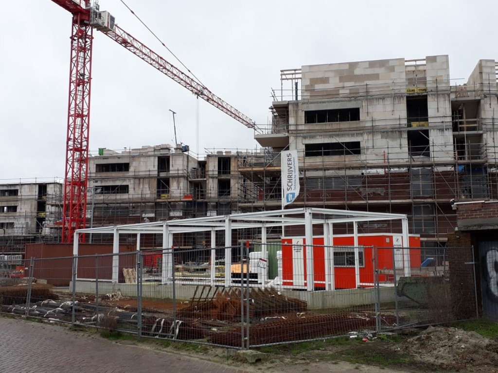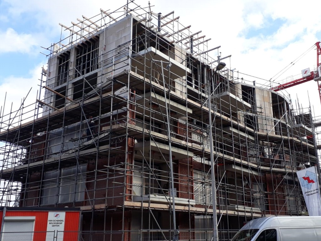 Ook zijn we volop bezig met het metselwerk en worden de gasbeton binnenwanden geplaatst. Aan de binnenkant is duidelijk te zien hoe de indeling van de appartementen gaat worden. De eerste stelkozijnen zijn geplaatst dus de gebouwen krijgen steeds meer vorm. Op bijgevoegde foto’s is goed te zien hoe de bouw vordert.