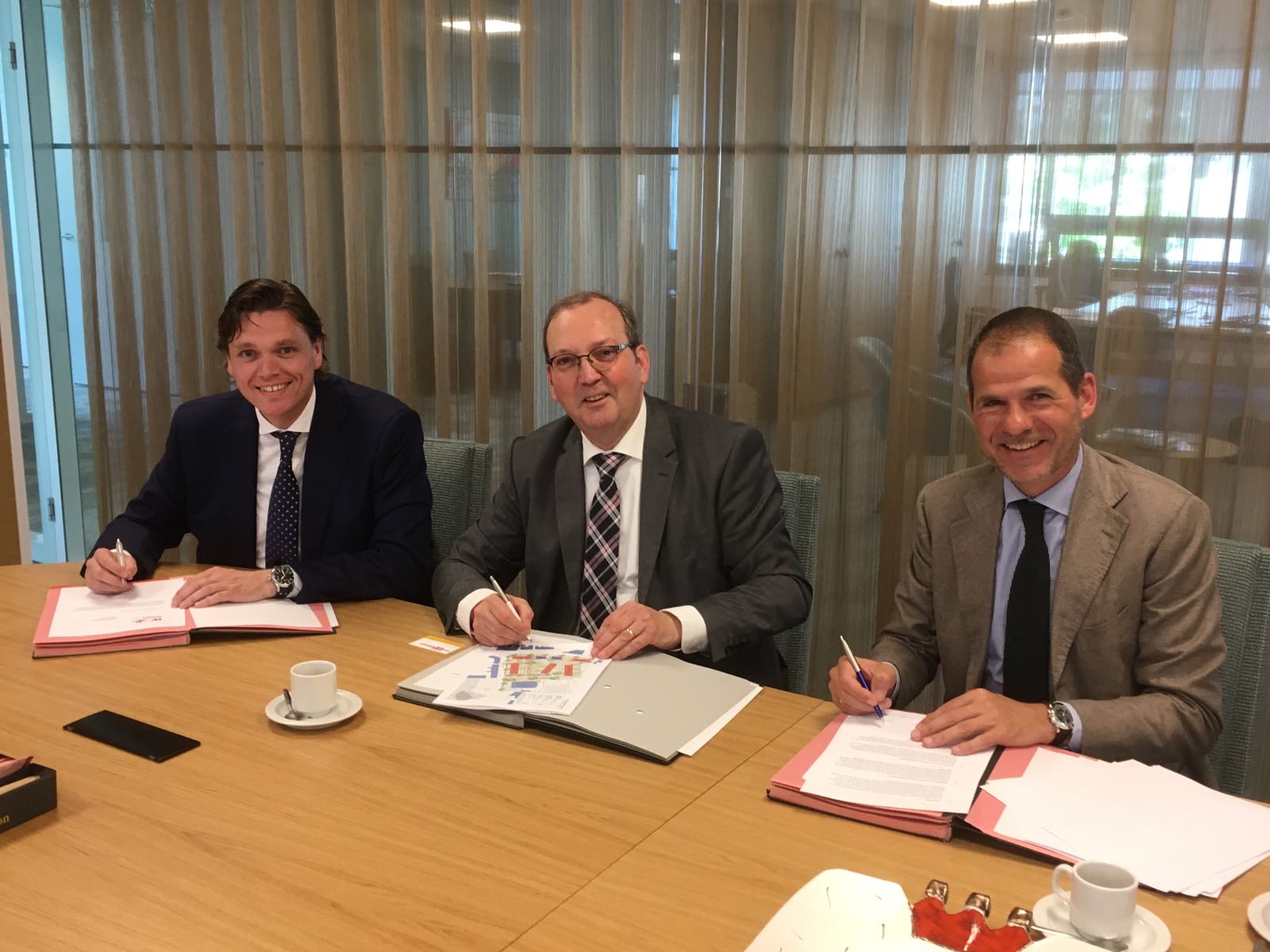 Onderstaand tekenen de heer Gerard van Schijndel (Van Schijndel Bouwgroep), de heer Eric van den Boogaard (gemeente Meijerijstad) en Clemie van Wanrooij (Van Wanrooij Bouw- en Ontwikkeling) de samenwerkingsovereenkomst.