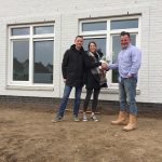 Op onderstaande foto overhandigd de uitvoerder, Gerrit Sterrenburg, de sleutel aan de heer Hendriks en mevrouw Tüss. Wij wensen iedereen heel veel woonplezier in hun nieuwe woning.