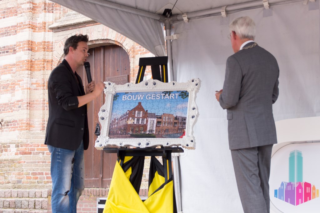 Op zaterdag 9 juli j.l. werd het eerste startsein al gegeven door te starten met de verkoop van de koopappartementen. Hiervoor was zeer veel animo. Burgemeester Pommer opende officieel de bouw door het laatste puzzelstukje aan te brengen in de puzzel die werd onthuld met daarop het mooie project. (zie foto met puzzel gemaakt door Rien den Otter, MooiGestel)