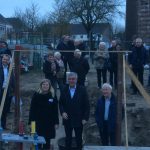 De jongste en de oudste toekomstige bewoners hebben samen met wethouder Ed Mathijssen een muurtje gemetseld, waardoor het officiële startsein gegeven is voor de bouw van fase 2 van het complex ‘Dommelsch Huys’, wat bestaat uit 19 koopappartementen en een aantal winkels in het centrum van Sint-Michielsgestel.