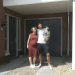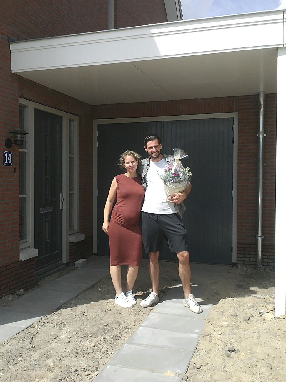 De kopers van bouwnummer 44, familie Sleegers heeft de sleutel uit handen van werkvoorbereider Hans van den Elzen ontvangen.