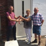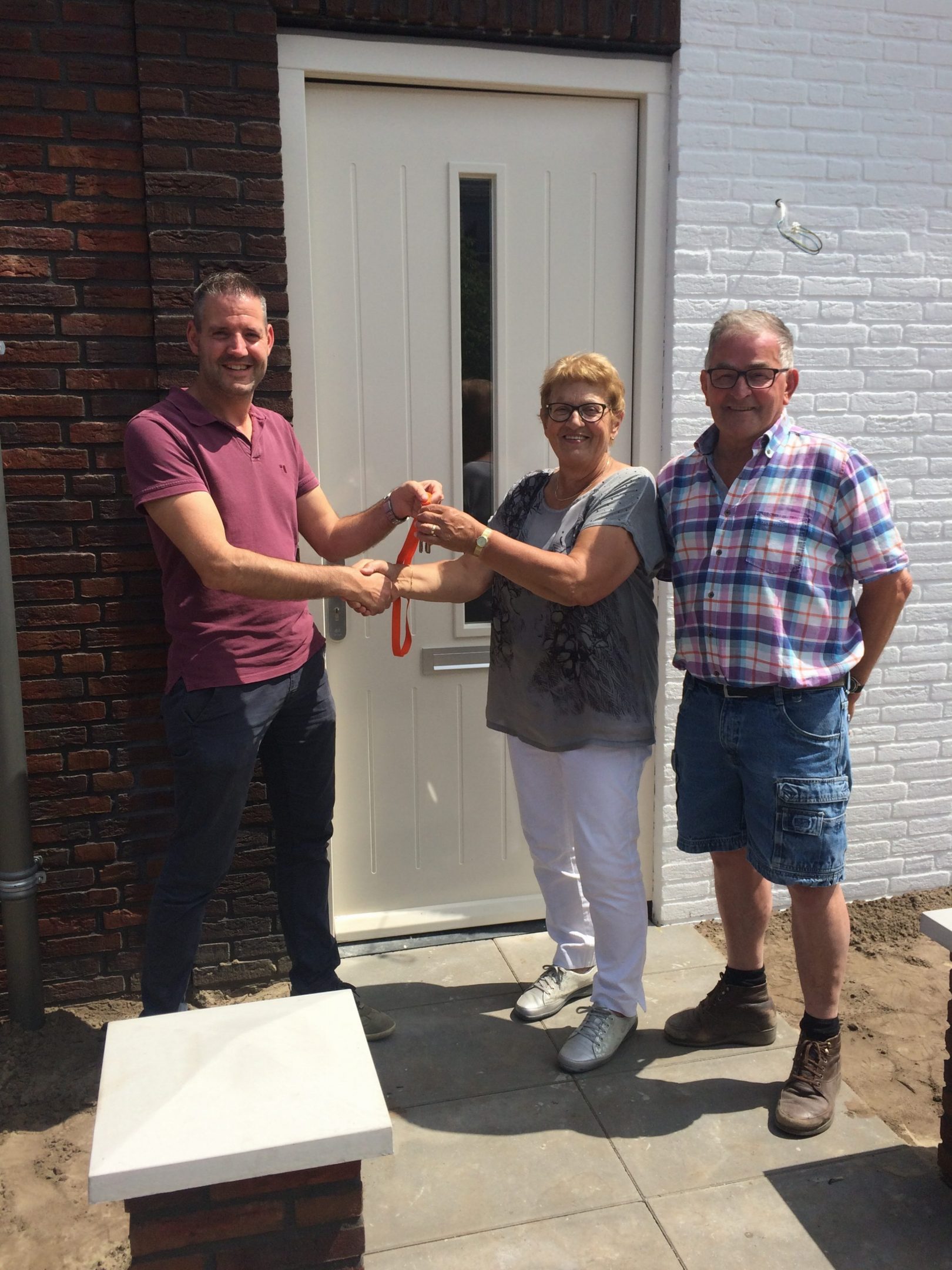 Op onderstaande foto ontvangen de kopers van bouwnummer 10, familie van Bergen de sleutel uit handen van de projectleider, Jacco van den Broek. Wij wensen de familie van Bergen veel geluk in hun nieuwe woning.