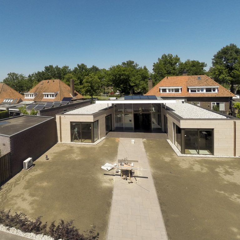 Het project aan de Heesweg in Beek en Donk, gerealiseerd in een bouwteam, omvat een twee-onder-één kapwoningen die getransformeerd is naar een zelfstandige zorgwoning met 4 appartementen; 1 voor de gezamenlijke verzorging en 3 voor de mindervaliden bewoners.